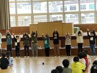 全校朝の会で表現活動に挑戦した1年生