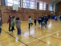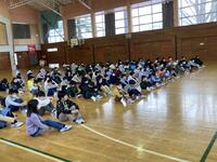 金曜日の朝の体力タイムでは、縦割り班での長縄跳びにチャレンジしています。少しずつ跳べる回数が増えています!