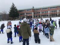 次は避難訓練の様子です。冬の寒い中、校庭に避難するという体験をしました。
