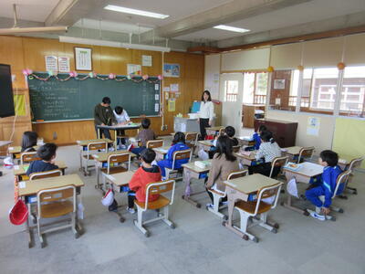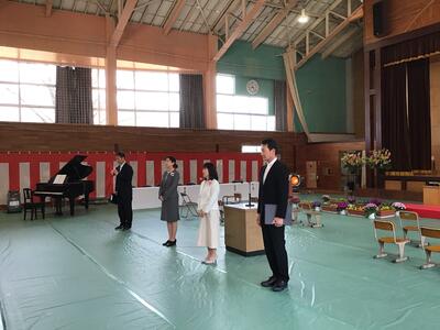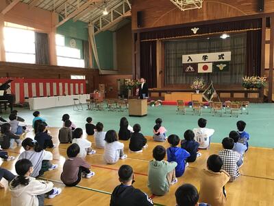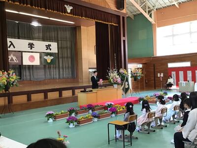 入学式では新1年生18名が、大きな声で返事をして立派な態度で式に臨むことができました。
