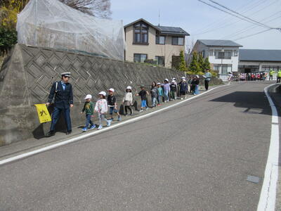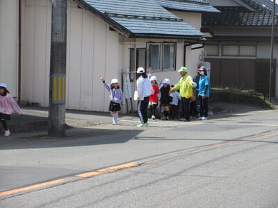警察署や交通安全協会、交通安全母の会、見守り隊の方が、指導に来てくださいました。
