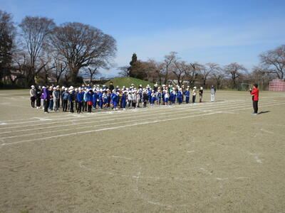 校庭集合時刻の5分前には全員整列完了し、みんなやる気満々でした。