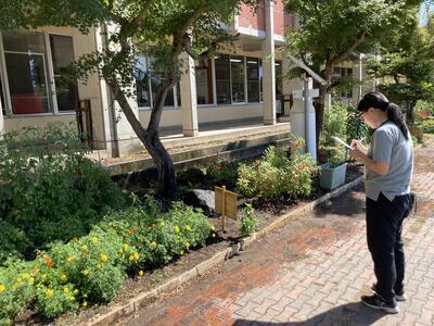 今日は「花いっぱいコンクール」の審査員さんが来校し、磐梯一小の花壇を見て行かれました。