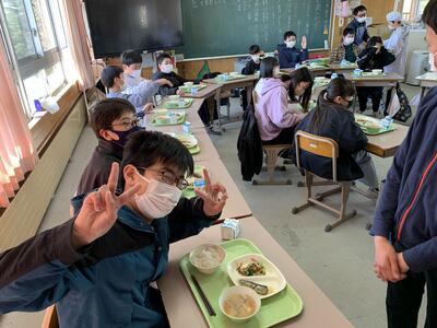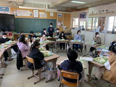 6年生は磐梯一小での別れを惜しみ、給食の座席を工夫して、楽しみながら食べていました