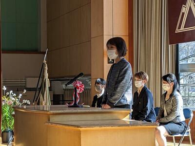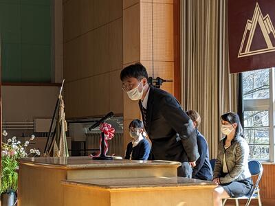 2023年3月28日 16時35分あたたかい春の日差しが降りそそぐ穏やかな気候の中、これまでお世話になった先生方にお別れをする離任式が行われました式では、磐梯一小を離れる7名の先生方から、お一人ずつ心のこもったあいさつをいただきました