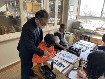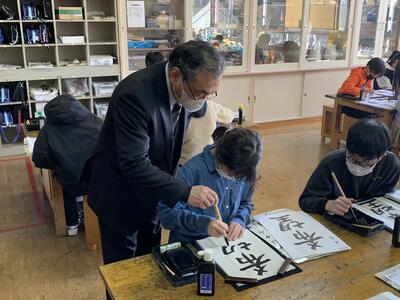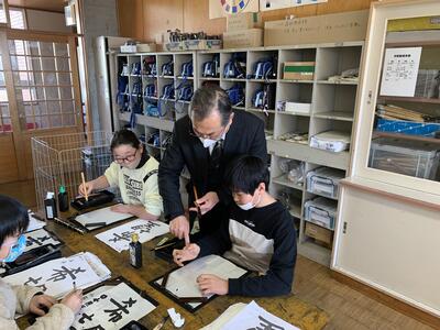 昨年度、お世話になった先生が、来校されるご用があり、5年生の書写の授業で成長した様子をご覧いただきました