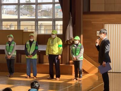 見守り隊の皆さんから、「子どもたちのあいさつから元気をもらっている。」「これからも安全に登校してほしい。」など、温かいお言葉をいただきました