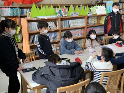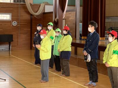 今日の地区児童会の内容は、これまで班長を務めてくれた6年生から5年生へと班の旗が引き継ぎ、3学期の登校の反省などが中心でした