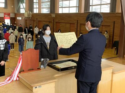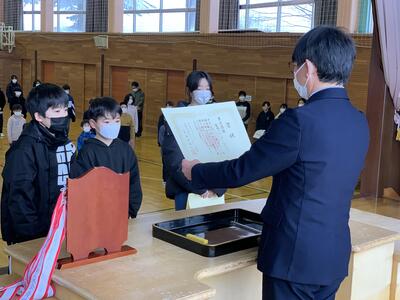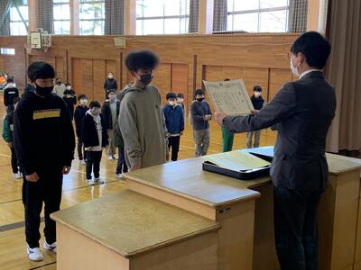 はじめに、バスケットボールスポーツ少年団の表彰を行いました