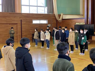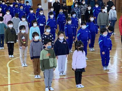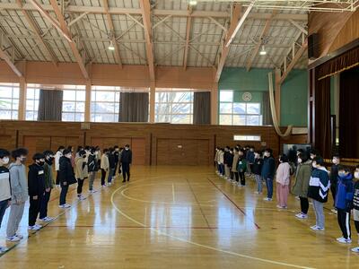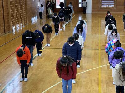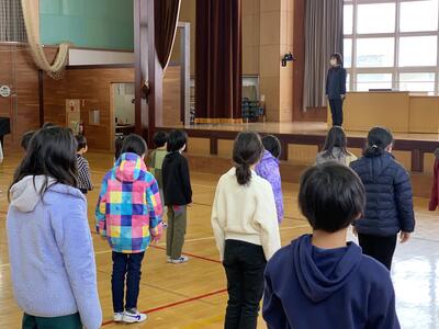 最後は、卒業式・修了式に向けた姿勢と礼についての練習を行いましたみんなの礼がそろうと、見ていてとても気もちが良かったです
