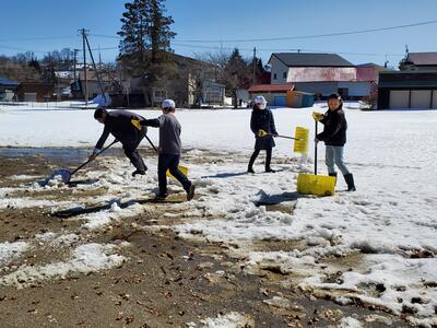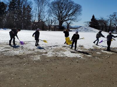 そこで、昼休みに4年生ボランティア「磐梯一小雪かたし部」が、雪かきを行ってくれました