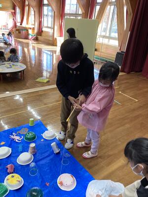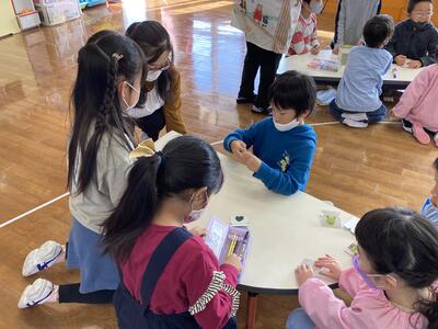 しかし、元気な2年生は、しっかりお兄さん、お姉さんとして園児の子どもたちに教えながら仲良く活動することができ、満足した表情で学校に帰ってきました
