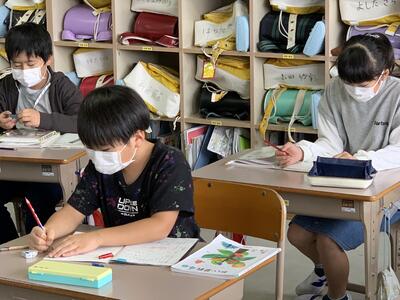 国語の授業では、感想を伝え合ったり、はっぴょうをしていました自信をもって自分の考えを述べる姿に、成長を感じます