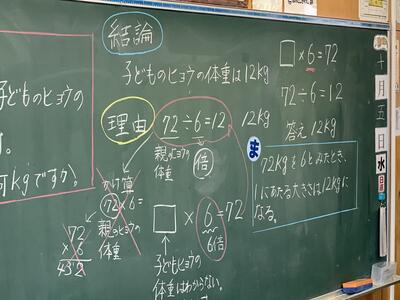 今日は6年生が、中学校の校長先生に算数の授業を行っていただきました