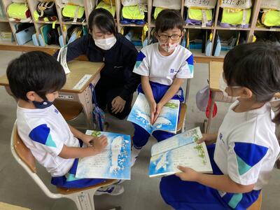 今日はハーモニーの皆さんに、低学年へ読み聞かせを行っていただきました