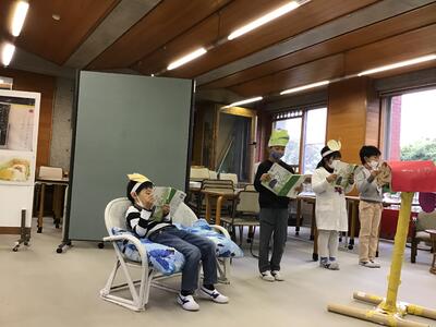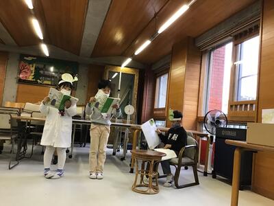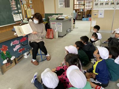 今日は1年生に「おこだでませんように」、2年生に「ぞうになったうそ」などを読んでいただきました