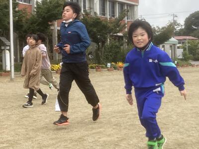 毎週金曜日は体力タイム今日は上級生がリードしながら、みんなで楽しく走りました