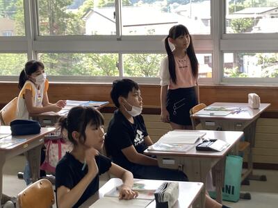 授業中に「はっぴょう」をがんばる子どもたちの様子です