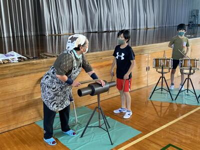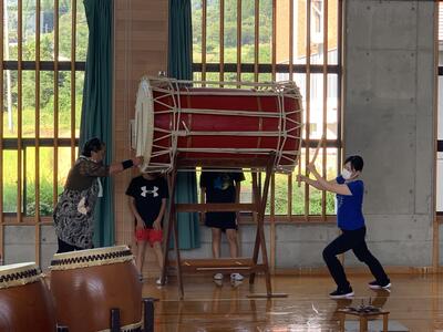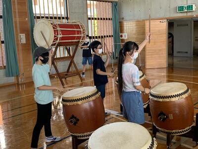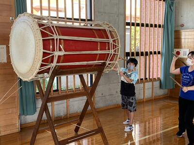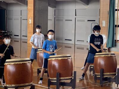 2022年9月14日 16時00分5年生が総合学習で磐梯明神太鼓に挑戦しています