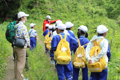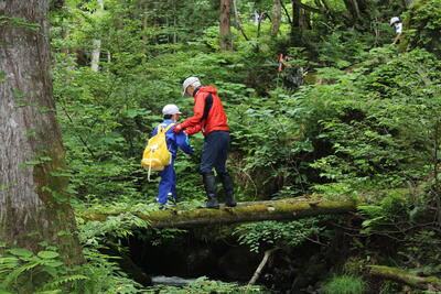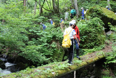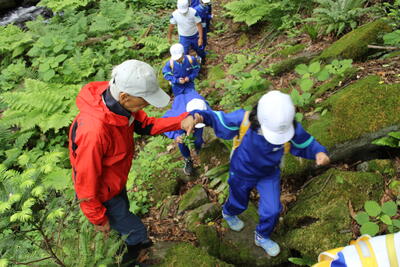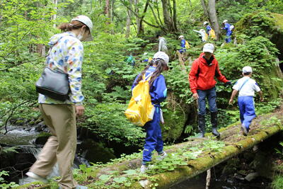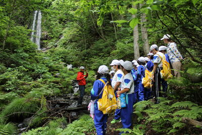 川に入ることを楽しみにしていた子どもたちも多かったようですが、不動滝(通称:蛇追ヶ滝)見学もとても充実したようです