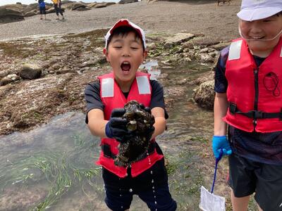 ウニ、貝殻、ヒトデ、、、中にはタコを見つけた子もいたようです