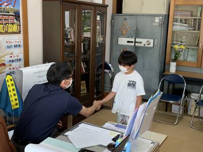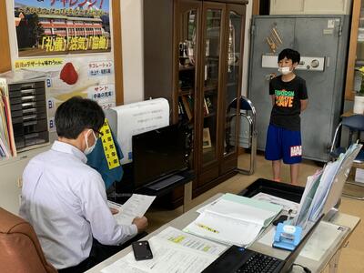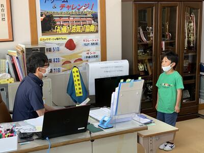 校長室では、朝から暗唱に合格した子どもたちが、校長先生から賞状をもらっていました
