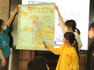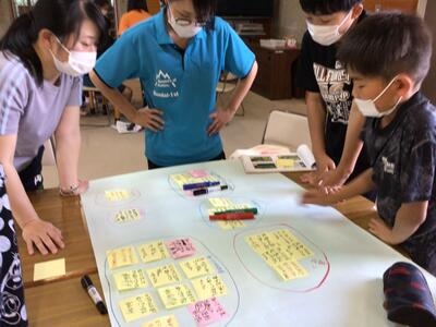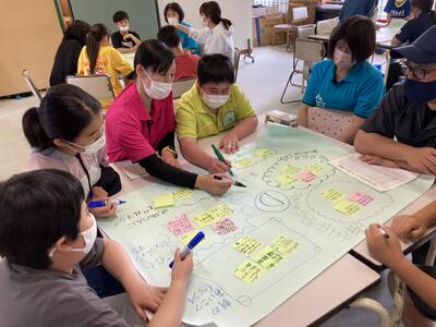 磐梯一小をさらによくするために、「どんなことをしたらよいだろう?」と、6年生と先生方でワークショップを行いました