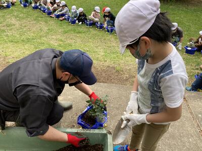 JA様より、2年生にミニトマトの苗をいただきました