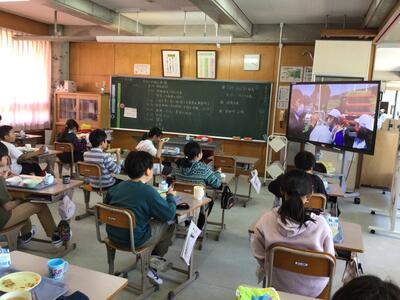 早速、田植え体験の様子をスライドで振り返りながら、美味しくいただくことができました