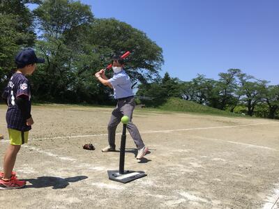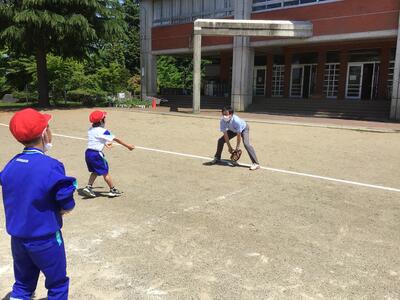 野球経験のある、校長先生から教えてもらい、子どもたちもとても嬉しそうでした