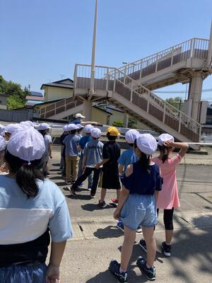 2022年5月30日 14時30分1年生が生活科で、学校のまわりを探検してきました