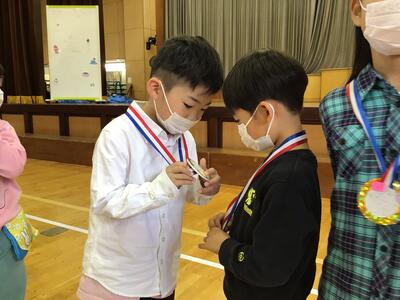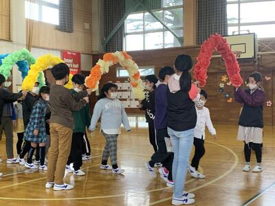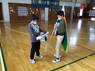 6年生は磐梯一小の1年間をわかりやすく劇で表現し、5年生は1年生を迎えるアーチの花飾りを作って、4年生は体育館のきれいな掲示づくり、2、3年生はメダルのプレゼントと、まさにファミリーとなって準備をして、この日を迎えました