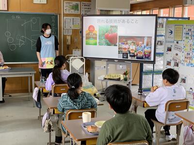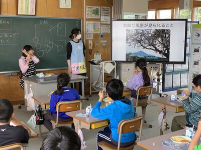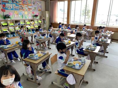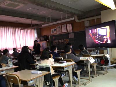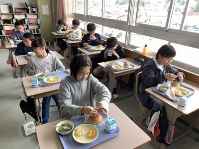おいしい給食を味わいながら、磐梯町のよさについて、栄養教諭作成の動画を楽しみました