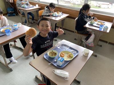 磐梯町特産の「里山の慧(めぐ)み」を利用した、米粉パンがはじめて給食に登場です