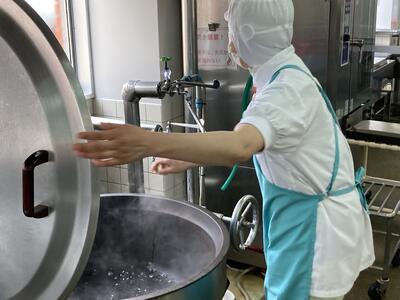一小の調理場では、幼稚園、小学校、中学校、磐梯町のすべての給食を作ってくださっています