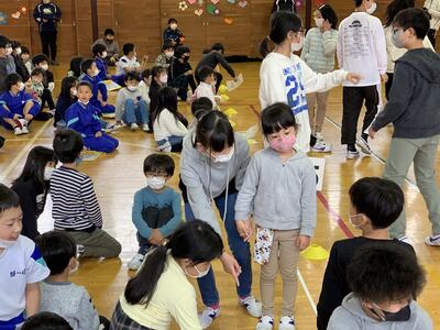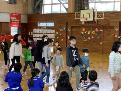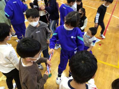 磐梯一小のたてわり活動「ほたるファミリー」に1年生が加わりました