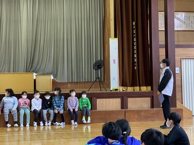 校長先生のお話をしっかり聴き、答える子どもたちの姿に成長を感じます