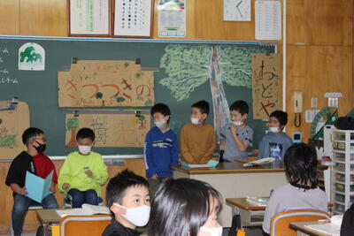 2年生は「ふきのとう」の音読劇です春の喜びを感じさせる、元気な発表でしたね