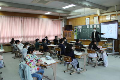 5年生は国語科で、漢字の成り立ちについての学習ですみんなで話し合う雰囲気が、とても良いですね