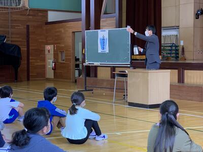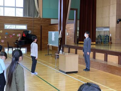 産休に入られた4年生担任の先生の代わりに、新しく来られた先生からあいさつをいただきました