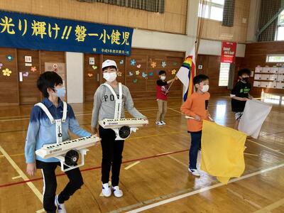 昨年度末に行う予定だった鼓笛移杖式が感染症防止のため、演奏を行うことができませんでした