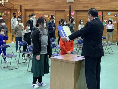 全校で集まる機会がなかったため、昼休みに応募者全員で表彰を行いました