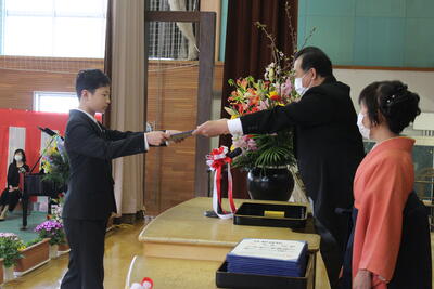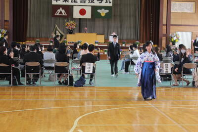 昨日、すてきな会場を作ってくれた、5年生の代表児童がりっぱに修了証書を受け取り、代表の言葉を述べました