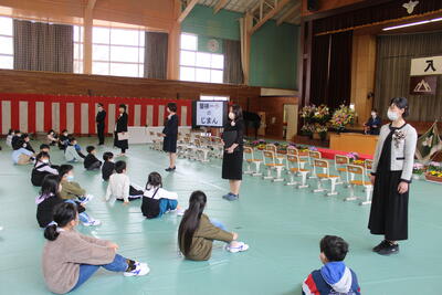新しくいらっしゃった先生方の着任式と始業式を行い、6年生代表が、歓迎の言葉を立派に述べました