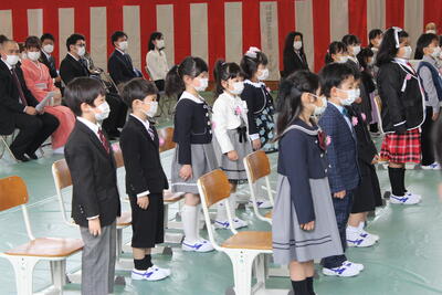 緊張しながらも、担任の先生の呼名に、元気に返事ができ、新しい生活に期待いっぱいの様子でした