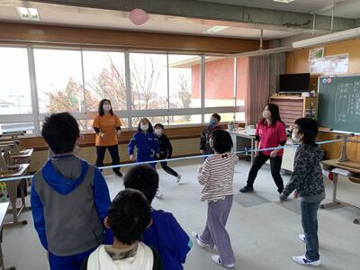 教室で楽しめる「風船バレーボール」 イス取りゲームで楽しみました