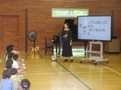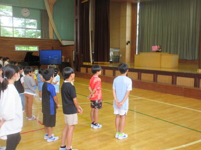 また、各担当から「夏休みの生活」や「夏休みの健康」について、全体指導を行いました。