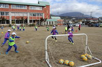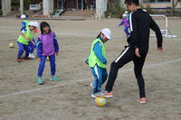 今日は,1年生と2年生が1時間ずつ指導していただき,ボールを蹴ったり操ったりする楽しさを味わいながら,サッカーを楽しみました。