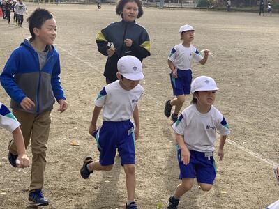 金曜日は、マラソン記録会に向けて、上級生が下級生を引っ張って、ペース走を行っています