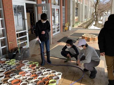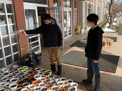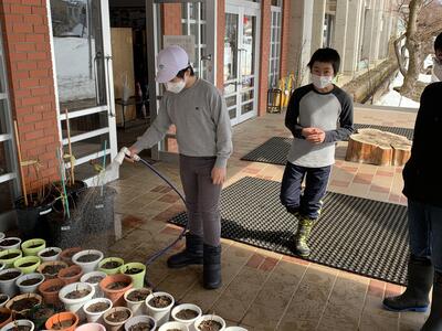 今日は気温が高く、おだやかな気候でしたので、6年生が久しぶりに水やりをしてくれました